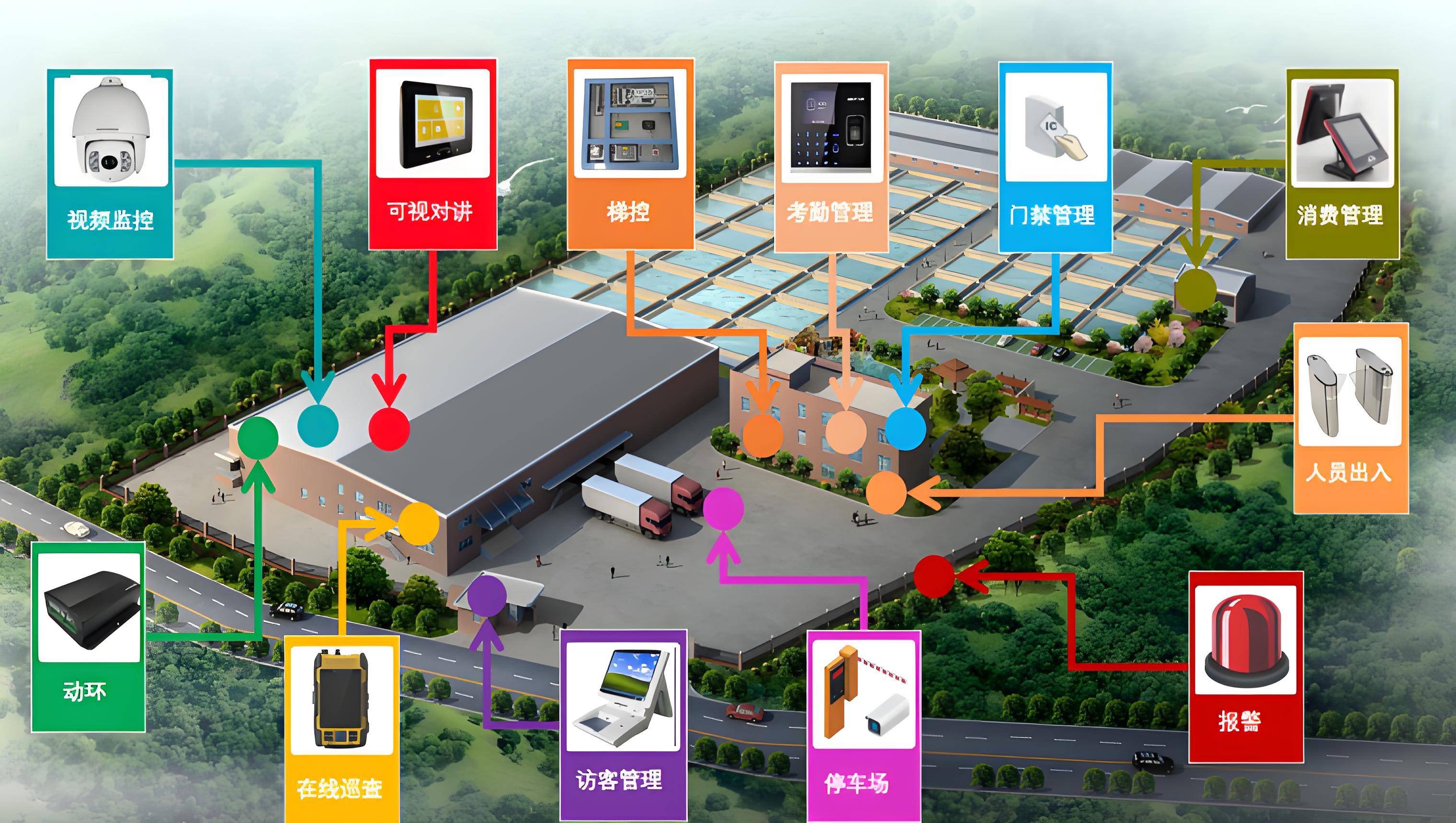 涵盖楼宇智能化设计、智能门禁系统、视频监控、消防联动系统